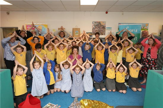 Year 3 class from Ysgol Twm o'r Nant came to meet Leisa Mererid, actor and author of 'Y Wariar Bach' and 'Y Goeden Ioga'. They enjoyed a session full of energy and fun learning about yoga movements and breathing. Following the yoga the children registered to join the challenge and chose books. Young readers can sign-up for the challenge at their local Library or online, collecting stickers, discovering new stories and enjoying a variety of free craft activities over the summer. Contact your local Library for details or at summerreadingchallenge.org.uk.