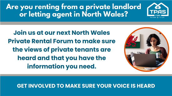 Six Local Authorities in North Wales are coming together to ensure tenants’ voices are heard across the private rental sector. We are hosting a half-hour lunchtime tenant forum to hear your voices on what you think the key information is that you need as a tenant.