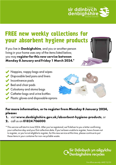 The Council’s Absorbent Hygiene Products (AHP) collections will be rolled out throughout the county from June 2024.