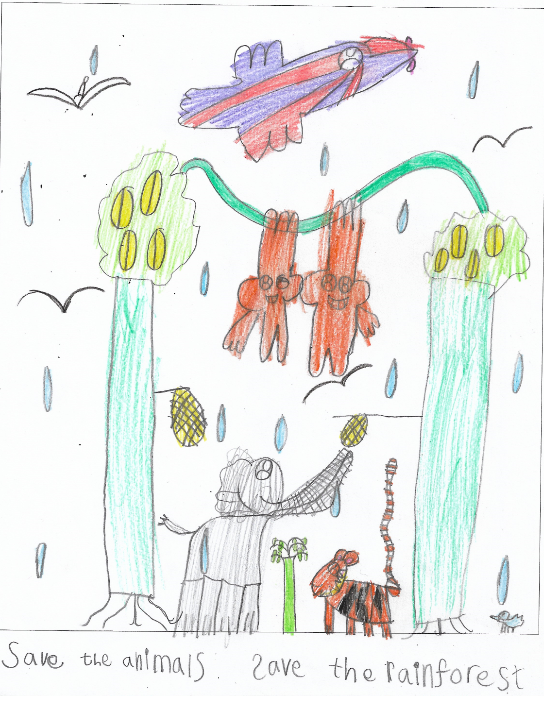 Pupils across Denbighshire have worked with Chester Zoo to look at the impacts of deforestation. This picture was drawn by Lily from Ysgol Caer Drewyn.