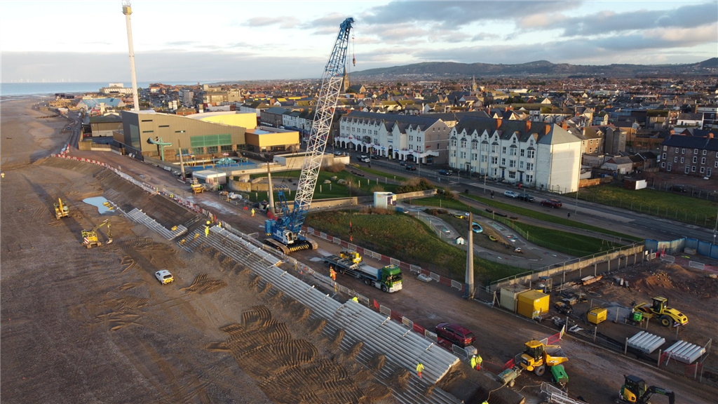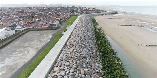 The project, delivered by Balfour Beatty placed 128,000 tonnes of rock armour in front of the existing sea defences and a newly added 600 metre sea defence wall and promenade was built to protect the area from current storms and the impact of climate change.