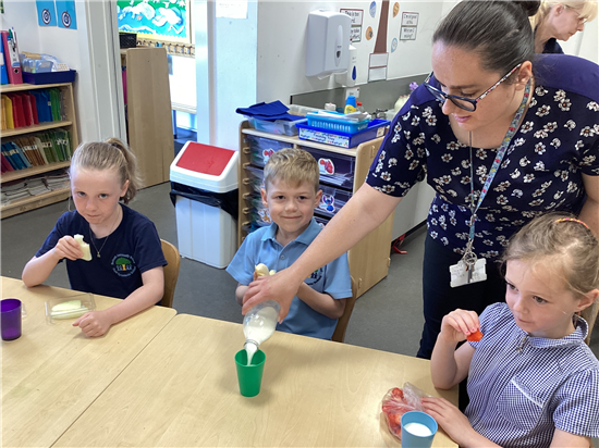 Previously staff ordered in 240 milk cartons / small plastic bottles a day. This has now been reduced to 60 small cartons for nursery pupils only, to support their self-serve option and help reduce spillages.