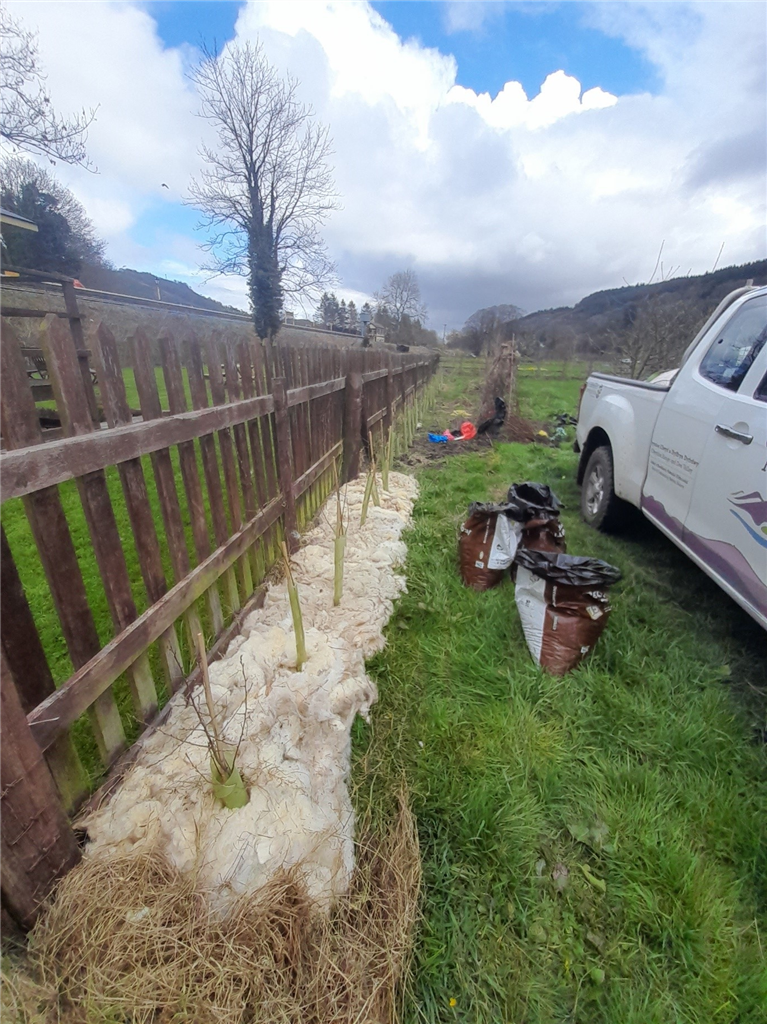Corwen Community Garden, a Denbighshire Countryside Service site had experienced repeated periods of water shortage due to a combination of anti-social behaviour and increased spells of dry weather conditions. A new, secure building was constructed from locally sourced Larch with the ability to harvest more rainwater coupled with a 50 % increase in storage capacity. The project also increased the composting ability of the site and created a new fruit bush hedgerow aimed at maximising the productivity of the site for the local community to enjoy. Gwllangollen, a self-funded CIC based in Llangollen supplied locally sourced wool from the Dee Valley for weed suppression to help the newly planted hedgerows.