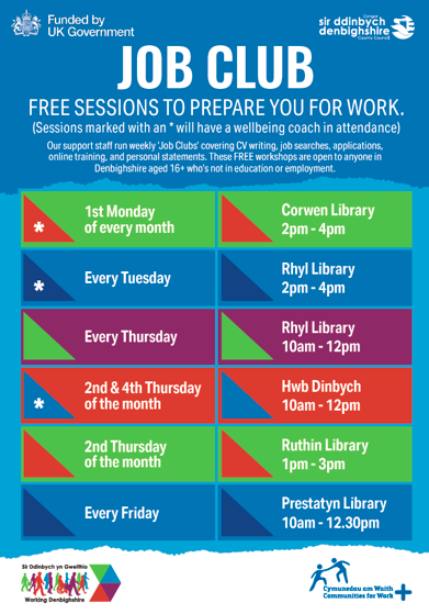 Working Denbighshire is part funded through the Welsh Government Communities for Work Plus Programme which supports those most disadvantaged in the labour market to overcome the barriers preventing them from gaining employment.