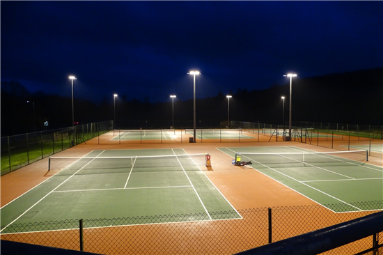 Figures have shown by replacing the old 2KW floodlight with the new 800W dark light sport floodlights, when all six courts are switched on they are saving 31.2KW/h which is a saving of 61.9 percent in electricity and carbon emissions which is very positive for the environment and the cost of running the centre.