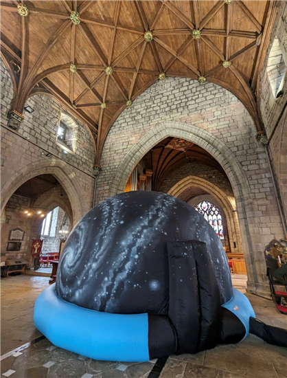 Two planetarium days were held, one at Chirk and the other at the Cathedral in St Asaph, all the sessions were full and over 120 people experienced the planetarium over the two days.