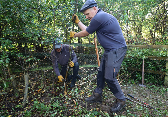 A team of countryside staff and volunteers have now added a little bit more protection for nature by carrying out hedgelaying on the site.