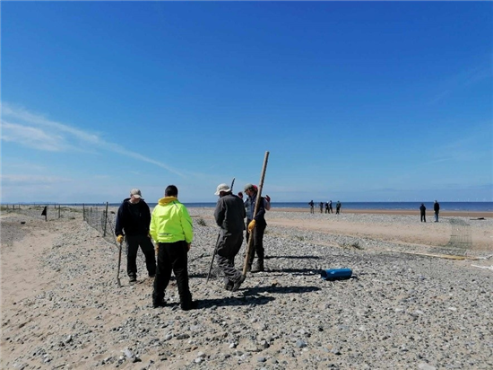 Staff and volunteers constructing pens on the shingle to protect little tern nests