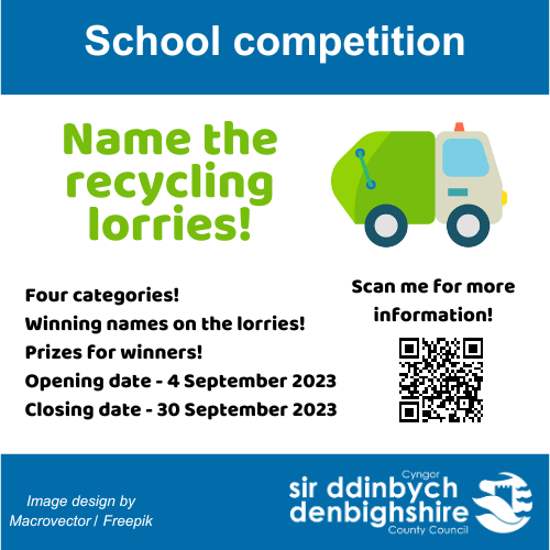 The competition is running from 4 September until 30 September and Denbighshire school children are invited to submit their creative names for the recycling lorries in either Welsh or English. There are four categories: